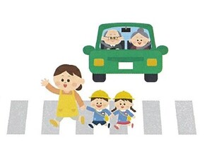 - ドライバーの方は、横断歩道を横断する歩行者や横断しようとする歩行者がいるときは、車を止めて歩行者を安全に横断させましょう。