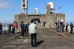 また防災訓練では、実際に緊急地震速報を放送し、地震発生時の行動を再確認した後、市場関係者等の津波一時避難施設である管理棟への避難経路の確認を行いました。
