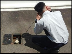 - 路面音聴調査:漏水探知器を用いて、道路下に埋設された配水管からの水漏れを調査します。