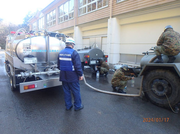 令和6年1月17日(水曜日)は、石川県穴水町で自衛隊の給水タンクへの給水など、応急給水活動を実施しました。