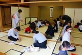 館内では、ボランティアによる展示解説や庭園の御案内に加え、兜&陣羽織の着装体験で記念撮影。さらに大名庭園を眺めながら抹茶と和三盆をお楽しみいただき、日本文化を堪能していただきました。