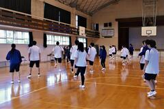 ダンスらしい動きを取り入れた準備体操で身体をほぐした後は、ダンスの動きをパートごとに繰り返し練習。