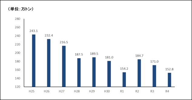 なお、電力の排出係数が大きく改善したため、前年度の総排出量と比べると18.2万トン(約10.6%)、基準年である平成25年度の総排出量と比べると90.3万トン(約37.1%)の減少となっています。