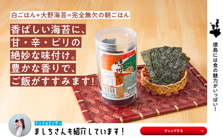 ごはんのおともに、ふるさとの味を。香ばしくパリッと焼き上げた大野海苔は、幅広い世代に愛される徳島自慢の逸品です。