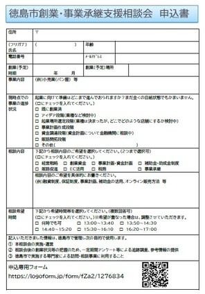 申込書に必要事項を記入して、徳島市経済政策課にメール、FAX、申込フォームのいずれかでお申込みください。