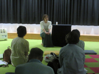 今回は、おにばばや魔物が出てくる怖いお話や、不思議なお話が披露されました。「だんなもだんなも大だんなさま」は、何にでも変な名前をつけるだんなさまのお話。ベッドは「へばりつき」、ズボンは「どたばたどかん」と呼ばなければなりません。ある日、家が火事になって…。ユーモアいっぱいのお話に、皆さん思わず声を出して笑っていました。