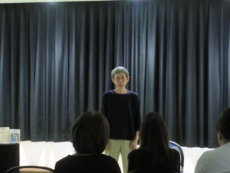 物語を覚えて本を見ずに語る「ストーリーテリング」の手法で披露されたのは、いろいろな国の昔話。「頭に柿の木(日本の昔話)」「ルンペルシュティルツヘン(グリムの昔話)」「三枚のお札(日本の昔話)」「ジーリコッコラ(イタリアの昔話)」「ねことねずみ(イギリスの昔話)」「三つのねがい(日本の昔話)」「ウリボとっつぁん(イタリアの昔話)」です。
