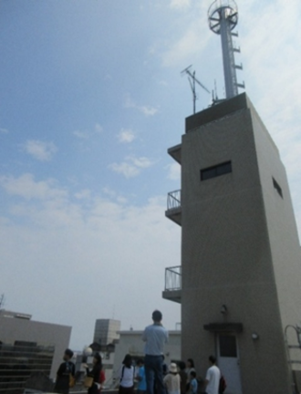 そして、普段なかなか入ることができない屋上へ。そこには望楼があり、昔は火の見櫓とも呼ばれていました。交代で櫓に登り、町の様子などを監視していましたが、現代は全てカメラに切り替わっているそうです。