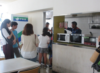 食堂には大きなお鍋があり、年末年始などはカレーを作りみんなで食べるそうです。約150杯ぐらい作れるんだって!!