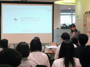 はじめに、国立国会図書館で実際に行われている複写サービスについてお話していただき、著作権について詳しく解説もしていただきました。図書館で取り扱う資料の大半は著作物にあたるため、改めて解説していただくことで、更に理解を深めることができました。