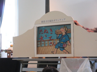 徳島県が舞台の紙芝居「家具かし弁天」と「たぬきと大工さん」を披露していただきました。