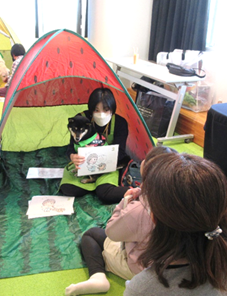 わんちゃんとの触れあい方を教わった後は、好きな本をわんちゃんに読み聞かせします。自分の好きな本をたくさん持ってきてくれた子や、お気に入りの1冊を繰り返し読む子もいました。最初は恥ずかしくて本が読めなかったお子さんも、可愛いわんちゃんと触れあっている間に緊張がとけて読み聞かせの本を自ら選びに行っていました。