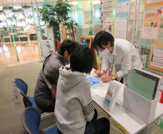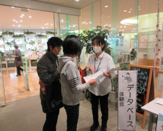 データベースにご興味を持たれたかたには、より詳しく説明をさせていただき体験してもらいました。また、ご存知でないかたには、インターネットコーナーで利用できること及びビジネス支援コーナーの説明をさせていただき、チラシをお渡ししました。