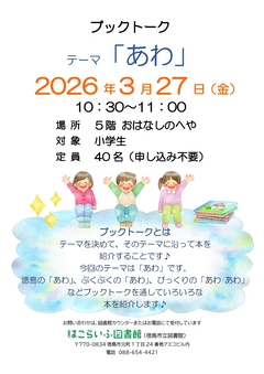 徳島の「あわ」、ぶくぶくの「あわ」、びっくりの「あわ あわ」などブックトークを通していろいろな本を紹介します♪